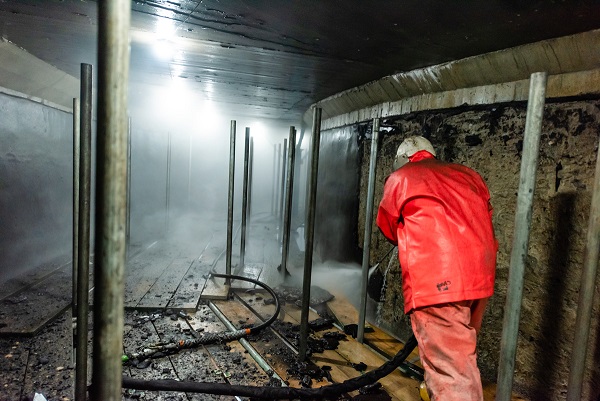 In order to gain access, a significant scaffold has been erected around the tower to enable works to be carried out to the external elevations and the 2 tanks within the tower. Further scaffolding was also required within the tanks so that the existing membrane could be removed (by hydro demolition with the assistance of vacuum extraction), any cracks identified and banded with Masterseal 930/933 joint waterproofing bandage system, a skim coat (Intercrete 4800) applied and then overcoated with 2 coats of Acothane DW protective coating.